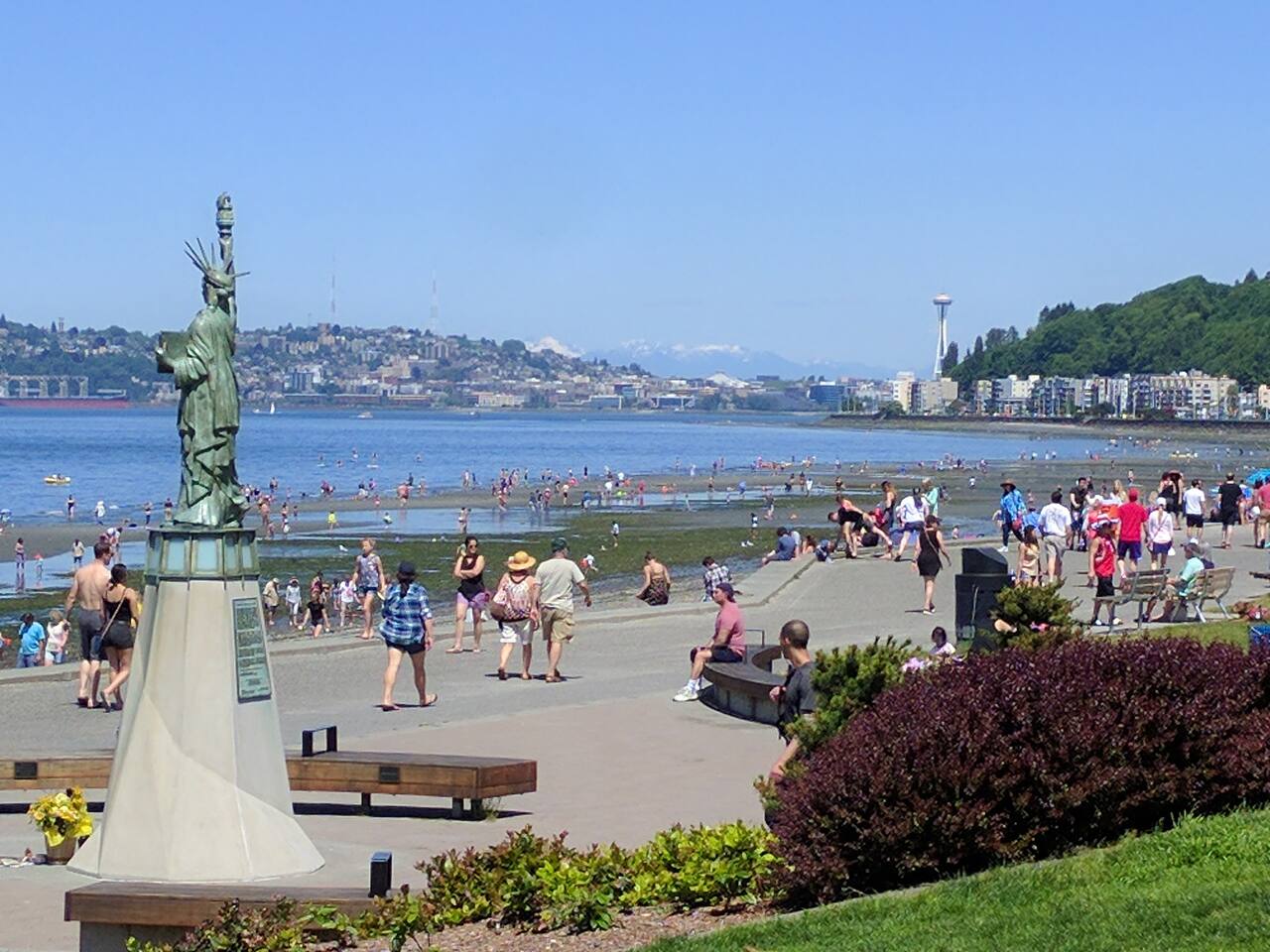 Beach From seattlesouthside: Alki Beach Park Located in West Seattle, about 15 minutes from downtown. A trip to Alki Beach and drive along the water has few, if any, equals in the city. It features stunning views of the downtown skyline and across Puget Sound. It has a sparkling sand beach that imparts a resort character and prompts an undeniable hunger for fish and chips. The drive also includes the historic spot on Alki Beach where the first white settlers arrived in Seattle and spent the winter of 1851 before retreating to the less blustery site on Elliot Bay that became downtown. Alki Beach is also a home to several restaurants year around ranging from hamburger joints to upscale gourmet with mesmerizing views of downtown Seattle. Whether you want to catch some rays or watch a winter storm roll in, Alki Beach is a great place to view Seattle from a different perspective. Walk, jog, rollerblade, or bicycle your way down the paved trail along the beach and take in all of the sights, sounds and smell of the beach. Join a game of beach volleyball, rent kayaks or stand up paddle boards from local vendors, go for a swim and then cozy up by a fire and roast marshmallows. There are so many ways to enjoy this beach you be coming back year after year to experience it all!”