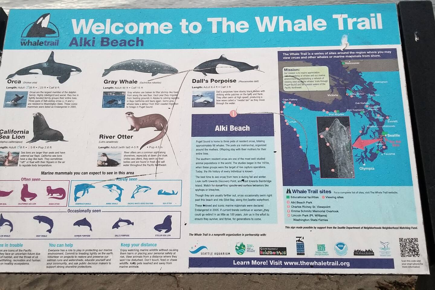 Alki Beach is unique in Seattle. One of the few sandy beaches in the area, and perhaps the most popular beach in the summer. With plenty of shared bikes and scooters for rent, jogging/biking path, fire pits, picnic tables and a bathhouse/art studio, this beach is popular year-round. Verdict: Alki Beach is awesome! Plus, it is a Seattle City park, so the public has access. Most beaches in Washington State are classified as private property, so having this amazing beach park open to everyone is truly special. Alki Beach Park is also part of the renowned "Whale Trail", a series of sites to view whales and other marine mammals from shore along the Pacific Coast. The best time to see orca whales from Alki is during the fall and winter, when the southern resident pods return to this area. West Seattle itself is also a gem. The birthplace of modern Seattle, West Seattle has always had a small town vibe due to the fact that it is on the other side of the Puget Sound from the downtown hustle/bustle/chaos, but is easily accessible by Water Taxi, bus, car, ride share, etc.