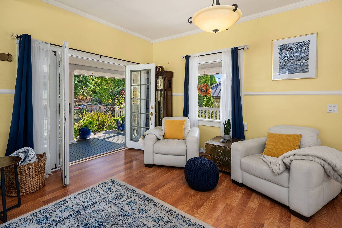 IMPORTANT SAFETY NOTES: • Please be aware that this is an older home and the stairs to the 2nd floor are steeper and narrower than normal staircases. **Please be extra mindful and careful while on these stairs.** • Be smart and be safe while using the decks! Do not allow children on the decks unsupervised. If children are sleeping in the flex room or the master bedroom, make sure the deck doors remain locked while children are unsupervised or sleeping. PROPERTY NOTES: • There is a private 2-BR unit downstairs which we are not renting at this time (though stay tuned!), but its entrance is in the back and wholly separate. •Also, the the backyard is NOT part of the rental so we do not have the right to go back there, or use it in any way. •There is also a second, smaller home on the property located in the backyard. We do not own and are not associated with this home; it is a private residence, they are a neighbor. → You might see them walking through the driveway to access their home in the back, or getting mail from the mailboxes up front. → Please note that the back garden belongs to them— it is NOT OUR GARDEN, it is theirs, so please simply enjoy its beautiful view instead of going inside the garden. Only the front half of the property is ours; the back half belongs to this neighbor.